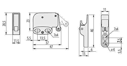 Hafele 245.54.701 mini-latch、スチール、ニッケルメッキ、プラスチック、ホワイト( 1 pc ) by Hafele America