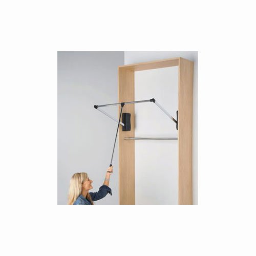 Width listed is the inside closet width.;Wardrobe lifts are screwed to side walls or vertical closet panels.;The ability to reach high clothing easily by making the clothes come to you.;Chrome steel rod and arms with a black housing.;Adjustable width to fit in any closets.