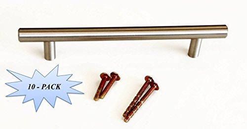 (10 - Pack) Cabinet Hardware, Satin Nickel Euro Style Bar Handle Pulls - 128mm (5") Hole Centers, 176mm (7") Overall Length [並行輸入品]