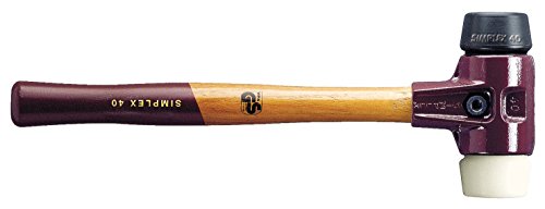 Hickory Handle. The Halder Simplex Mallet is the signature hammer in the Halder line. This patented hammer has a "split housing' design that is made from heavy duty cast iron. This split housing allows it to be take apart and the components can be replaced when worn or damaged. It solidly locks in the variety of replaceable insert faces. The faces are made of several different durable materials; from soft rubber to medium hard plastic to hard nylon. Halder also offers aluminum and copper faces for hitting very hard surfaces such as hardened steel (copper faces are only compatible with Halder Simplex with reinforced cast iron housing; call for details). The variety of face materials and sizes allow the Simplex to be used in many applications such as manufacturing, automotive, landscaping, furniture making, flooring, and machining just to name a few. The Simplex features the highest quality hickory handle which is protected by an extra-large overstrike area formed by the cast iron housing. This truly is a durable hammer and will be with you for many years!