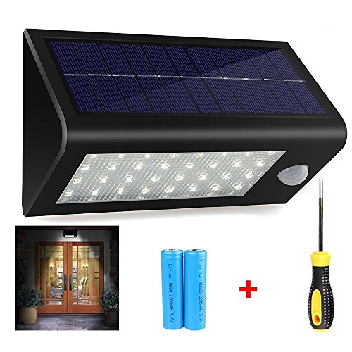 400Lumens Max 32LED Solar Lights, Hallomall Waterproof Solar Powered Outdoor Motion Sensor Lights,with Lithium Batteries + Screwdriver,3 Intelligent Modes,Wireless Exterior Security Lighting [並行輸入品]