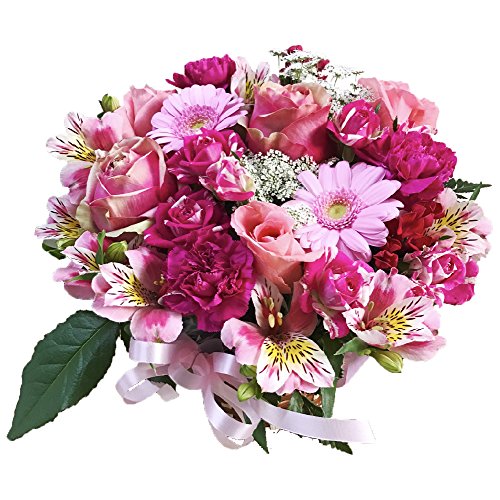 HanaDokoroかんも屋特製 『笑み花』 フラワーアレンジ フラワーギフト ピンク系 手書きメッセージカード お誕生日 お祝い ギフト プレゼントに最適 (Bアレンジ)