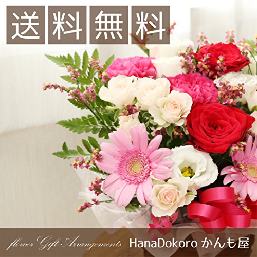HanaDokoroかんも屋特製 『笑み花』 ブーケ(花束) フラワーアレンジ フラワーギフト ピンク系 手書きメッセージカード お誕生日 お祝い サプライズプレゼント 贈り物 (Cアレンジ)