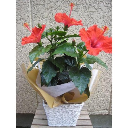 - ハイビスカス サマーレッド5号鉢 鉢カバー付き