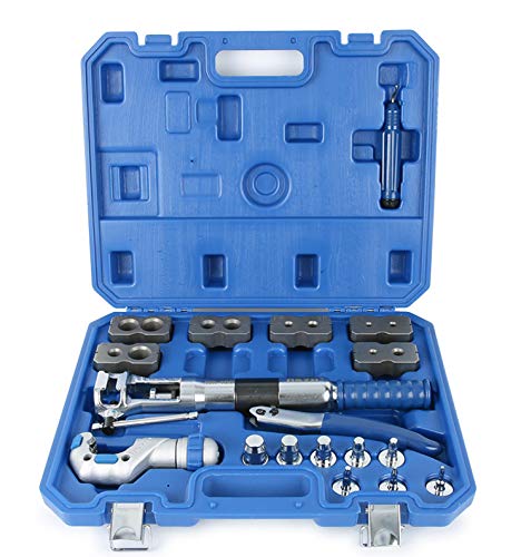 Hanchen ダブルフレアリングツールキット アダプター8種類付き チューブカッターを含む 銅パイプ専用 水道/空調配管用工具