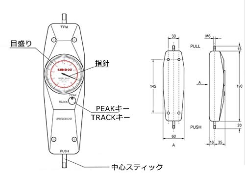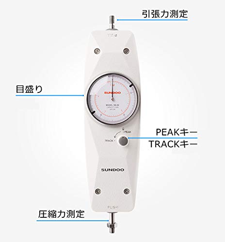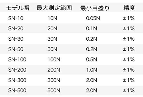 - メカニカル目盛り盤、直観的で使用便利。測定可能範囲10N/1kgで最小目盛は0.05N/0.005kg。