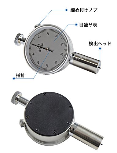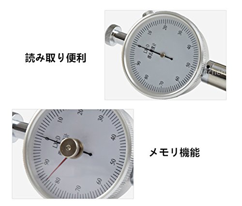 - 平面上に試料を置き、真上から圧力ピンの垂直圧を加え、密着後ただちに数値を読み取ります。
