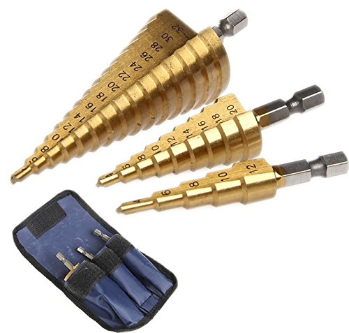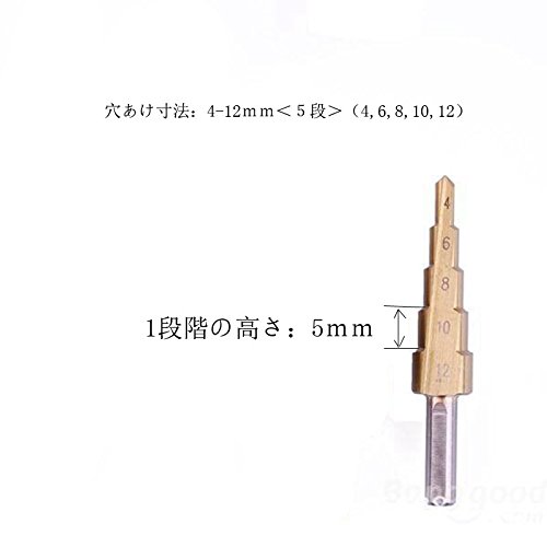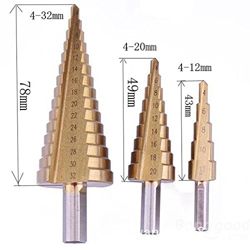 HangRui ステップドリル チタンコーティング 4-12mm 4-20mm 4-32mm 3本セット 薄鉄板 アルミ板 プラスチック プラスチックパイプに 使いやすい 収納ケース付き (3)