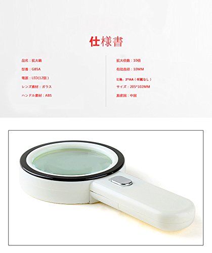 HangRui 手持ちルーペ 虫眼鏡 10倍拡大 老眼 10個LED付き (10倍)