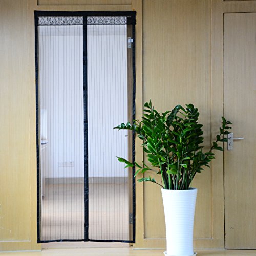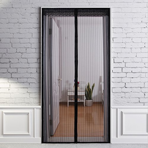 マグネット式玄関カーテン HangRui 玄関網戸 害虫対策 自動で閉まる 防虫ネットメッシュ 取付簡単 ブラック (90*210cm)