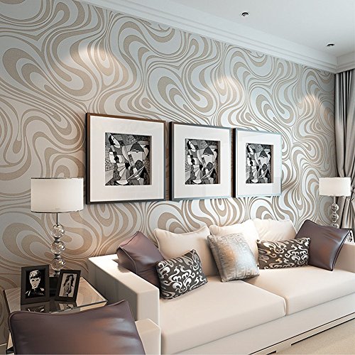 Hanmero Modern Luxury Abstract Curve 3d Wallpaper Roll Mural Papel De Parede Flocking for Striped Cream-white&silver Color Wallpaper 0.7m*8.4m=5.88 by Hanmero [並行輸入品]