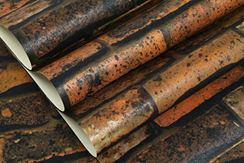(ハンメロ)Hanmeroリピング 部屋 ふすま diy リフォーム用おしゃれなレンガ壁紙 のりなし はがせる ビニールクロス 1ロール(53cm×10m)レンガ色