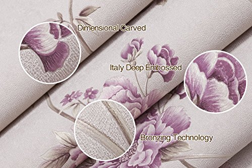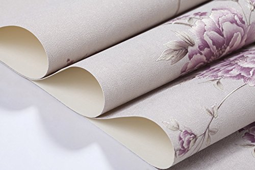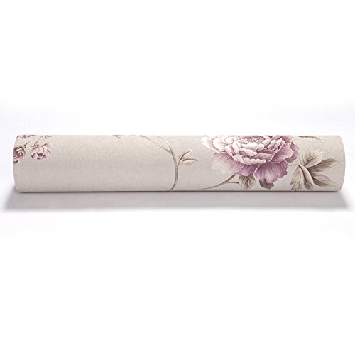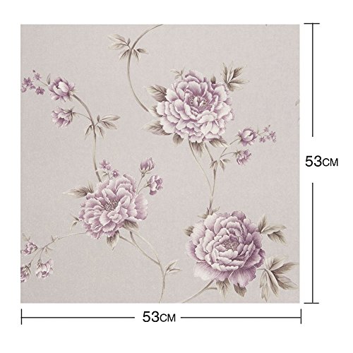 (ハンメロ)HANMEROリビング 部屋 ふすま diy リフォーム用おしゃれな花柄壁紙 のりなし はがせる ビニールクロス 1ロール(53cm×10m)パープル花&ベージュ地色