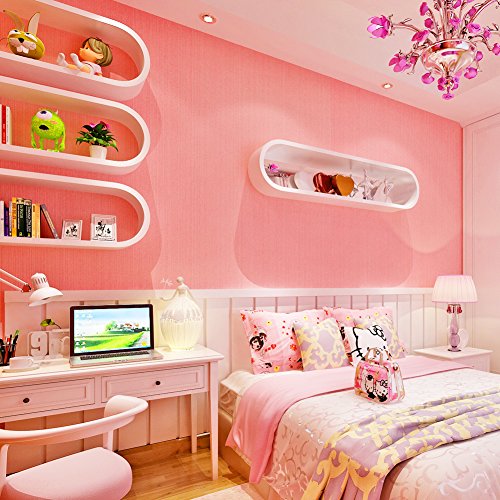 (ハンメロ)HANMEROリビングルーム 部屋 diy リフォーム用 無地 貼ってはがせる ビニール壁紙 のりなし 53cm×10m 姫系ピンク