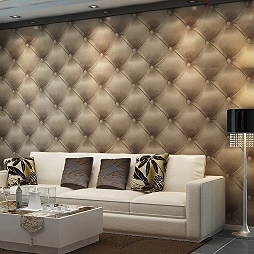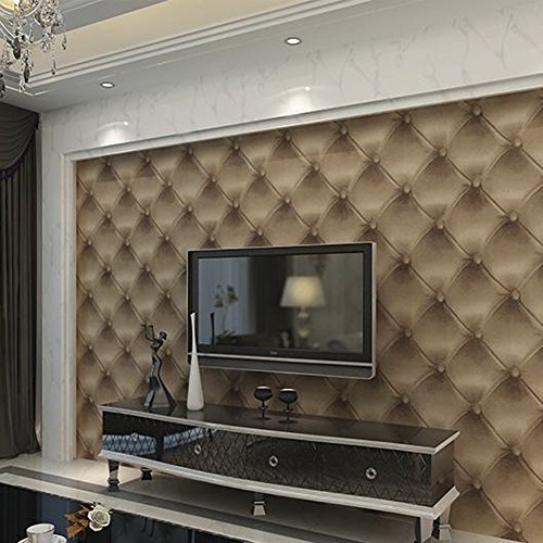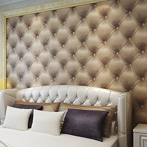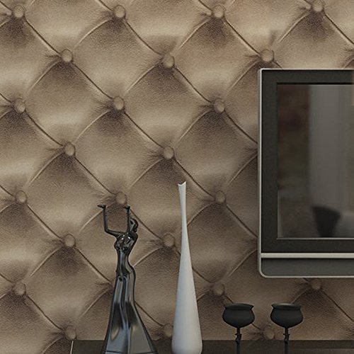(ハンメロ)HANMEROのりなし壁紙 革張りクッションフェイク ビニールクロス カーキ色 ラグジュアリー 1ロール(53cm×10m)