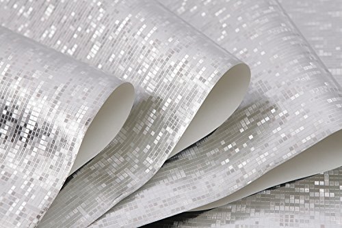 (ハンメロ)HANMEROのりなし壁紙 タイル 金箔 シルバー ラグジュアリー 1ロール(53cm×10m)