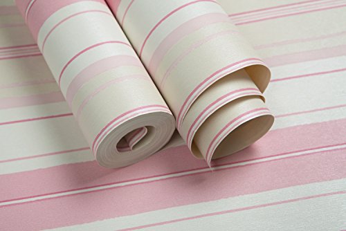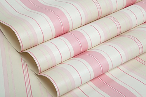 (ハンメロ)Hanmeroリピング 部屋 ふすま diy リフォーム用おしゃれなストライプ壁紙 のりなし はがせる フリース 1ロール(53cm×10m)姫系ピンク