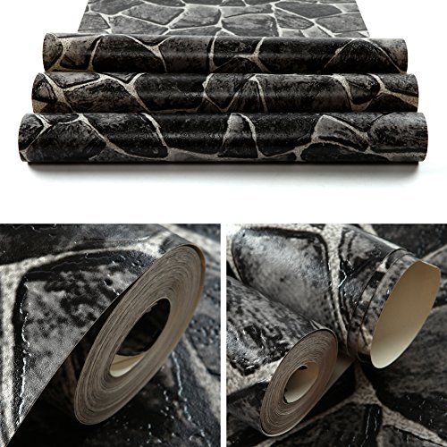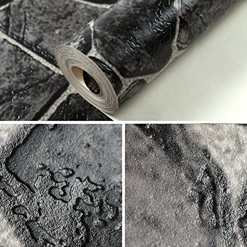 (ハンメロ)HANMEROリビング 部屋 ふすま diy リフォーム用おしゃれなレンガ壁紙 のりなし はがせる ビニールクロス 1ロール(53cm×10m)ブラック