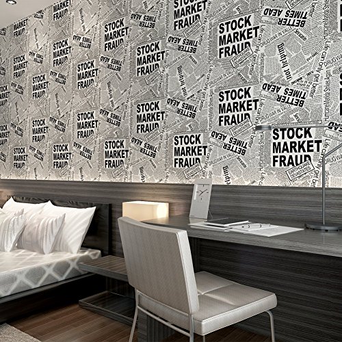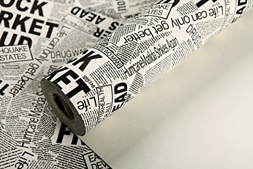 (ハンメロ)Hanmeroリピング 部屋 ふすま diy リフォーム用おしゃれな新聞壁紙 アルファベット のりなし はがせる フリース 1ロール(53cm×10m)白黒