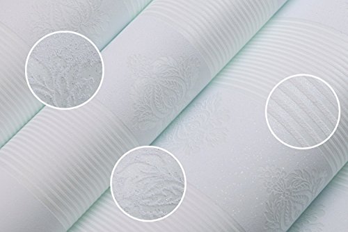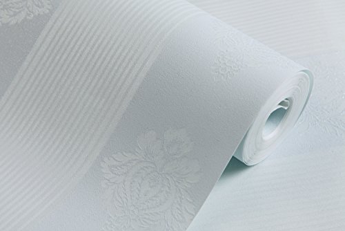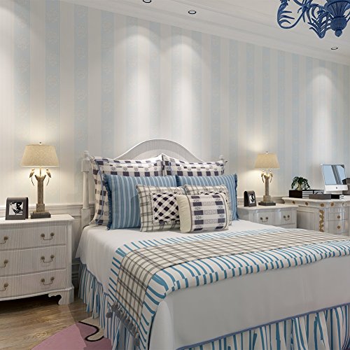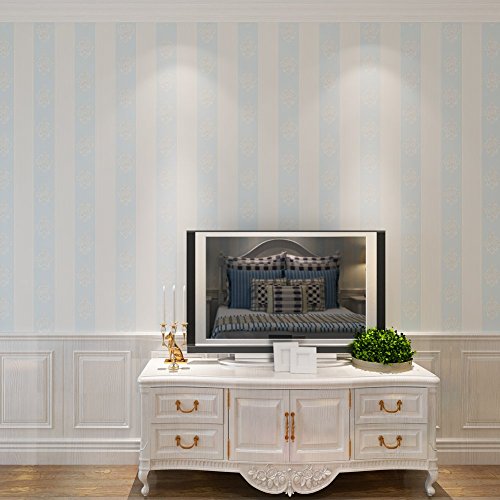 (ハンメロ)HANMEROリビング 部屋 diy リフォーム用 ストライプ&ダマスク柄 貼ってはがせる フリース壁紙 のりなし53cm×10m ライトブルー