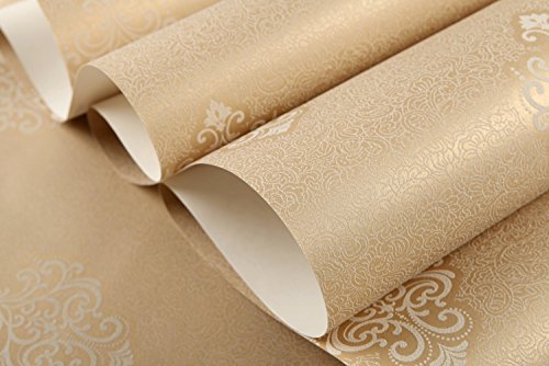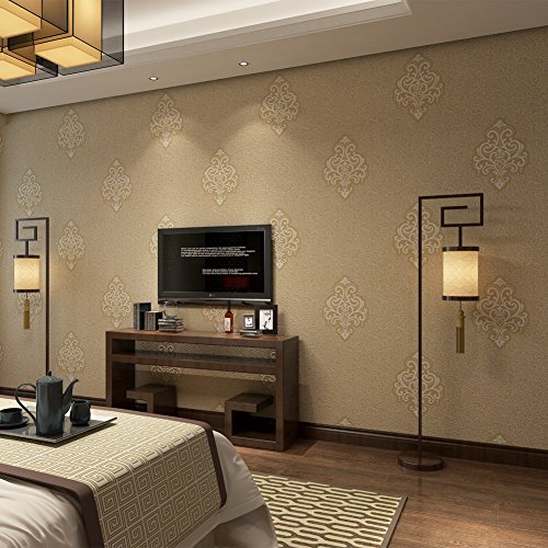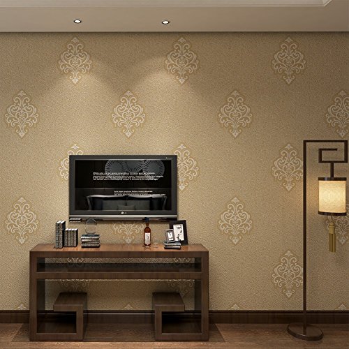 (ハンメロ)HANMEROリビング 部屋 ふすま diy リフォーム用おしゃれなダマスク壁紙 のりなし はがせる フリース 1ロール(53cm×10m)ブラウン
