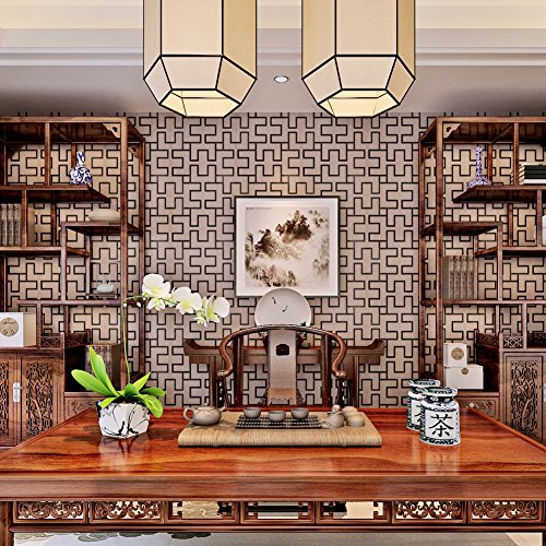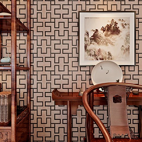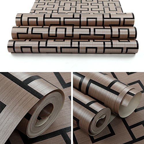 (ハンメロ)HANMEROリビング 部屋 ふすま diy リフォーム用おしゃれな迷宮壁紙 のりなし はがせる ビニールクロス 1ロール(53cm×10m) ブラウン