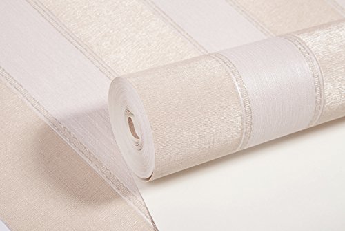 (ハンメロ)Hanmeroリピング 部屋 ふすま diy リフォーム用おしゃれなストライプ壁紙 のりなし はがせる ビニールクロス 1ロール(53cm×10m) ベージュ