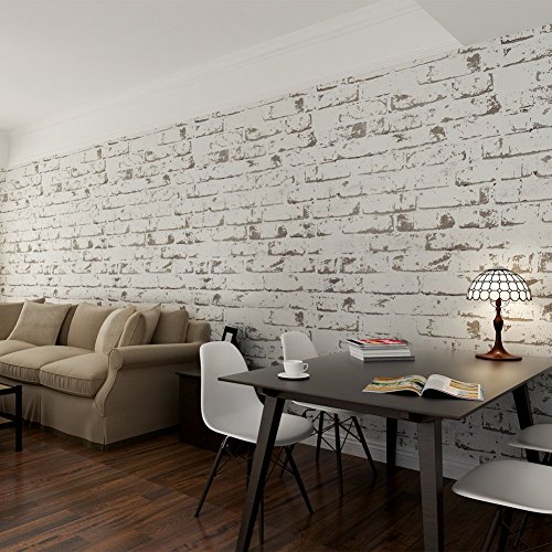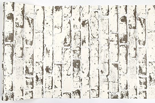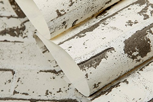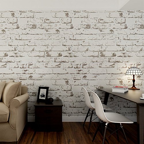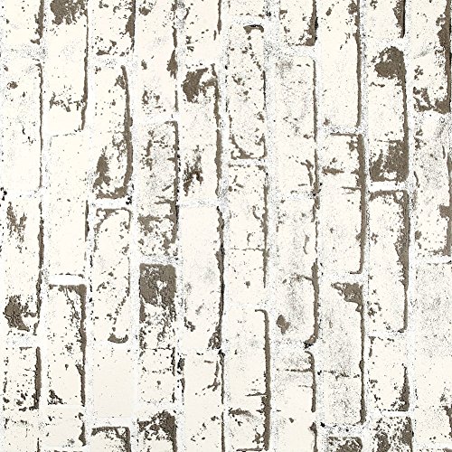 (ハンメロ)Hanmeroリピング 部屋 ふすま diy リフォーム用おしゃれなレンガ壁紙 のりなし はがせる フリース 1ロール(53cm×10m) シャビーなホワイトレンガ柄