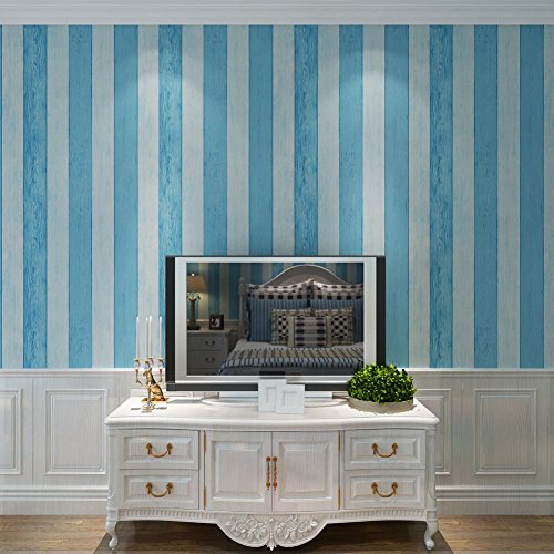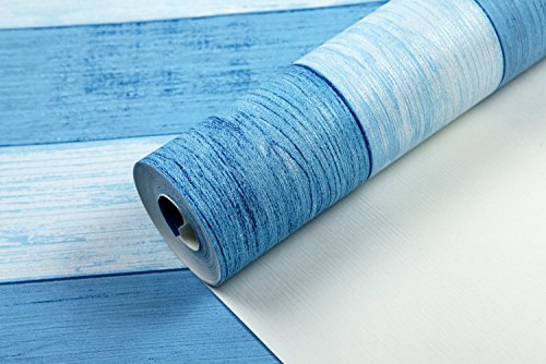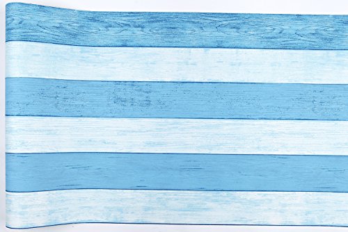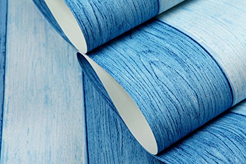 (ハンメロ)HANMEROリビング 部屋 ふすま diy リフォーム用おしゃれな木目壁紙 のりなし はがせる ビニールクロス 1ロール(53cm×10m)ウッドパッチワーク柄 ブルー&ライトブルー
