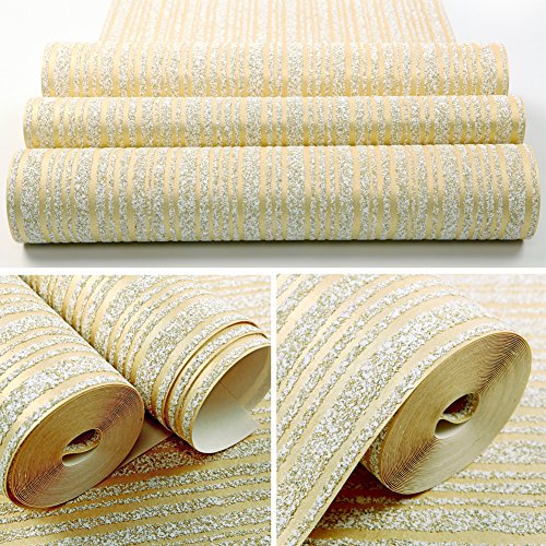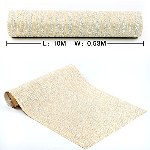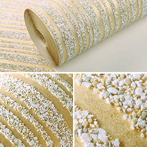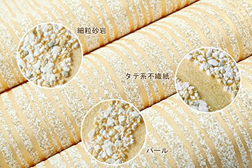 (ハンメロ)Hanmero壁紙 ストライプ柄 砂岩とパール加工 はがせる 不織紙 のりなし リビング部屋diyリフォーム用 53cm×10m ゴールド QZ0560