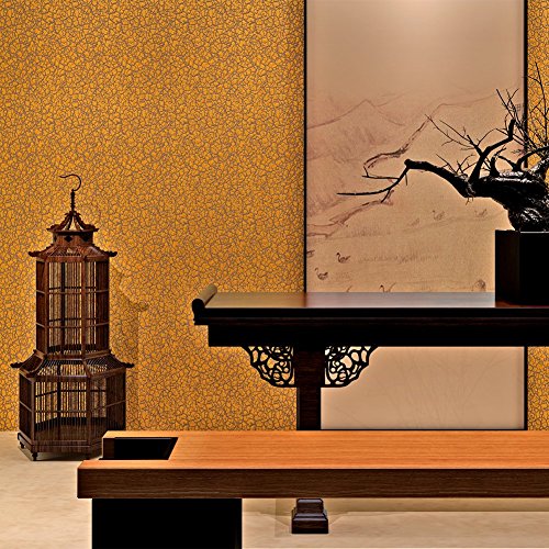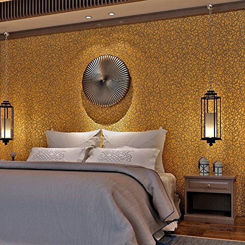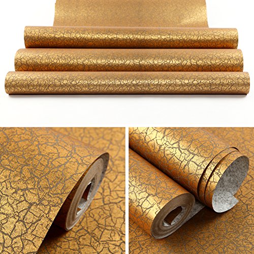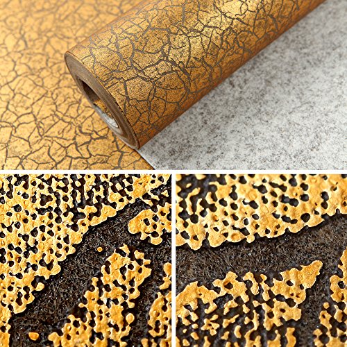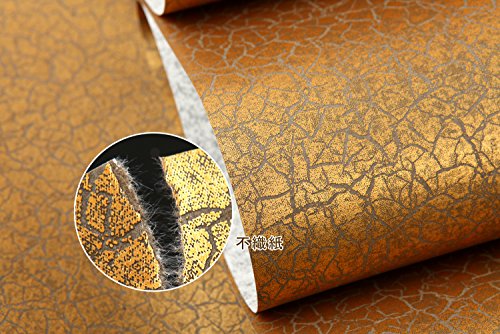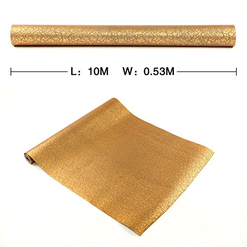 (ハンメロ)HANMERO壁紙 ひび割れ模様 はがせる 不織紙 のりなし リビング部屋diyリフォーム用 53cm×10m 箔押し ゴールド QZ0553