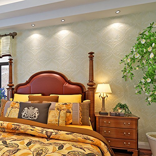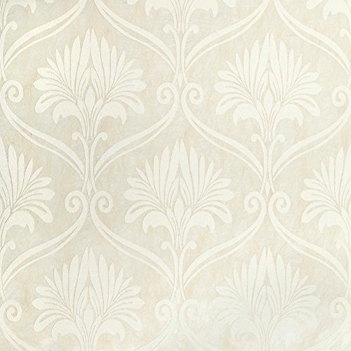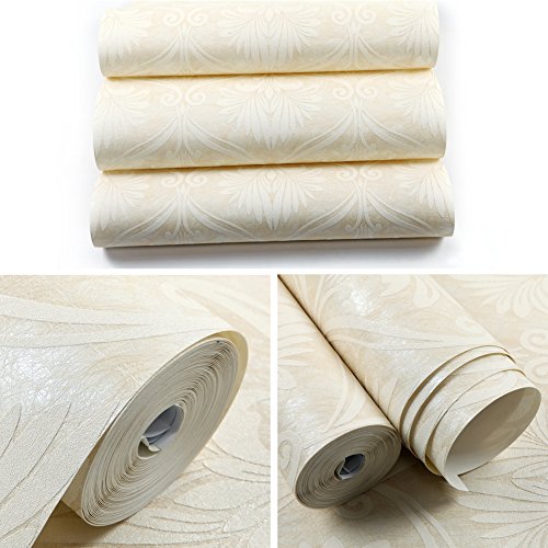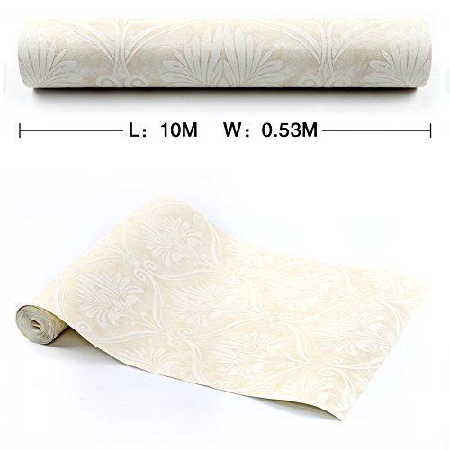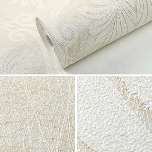 (ハンメロ)HANMERO壁紙 ダマスク柄 多繊維&発泡加工 はがせる 不織紙 のりなし リビング部屋diyリフォーム用 53cm×10m ホワイト QZ0463