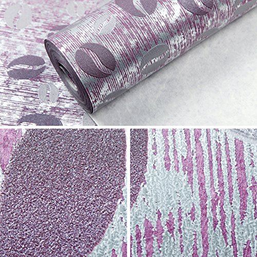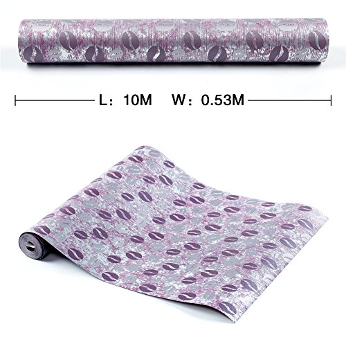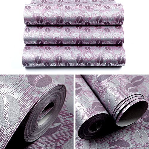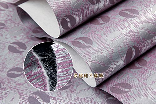 (ハンメロ)HANMERO壁紙 コーヒー豆柄 はがせる 不織紙 のりなし リビング部屋diyリフォーム用 53cmx10m 箔押し&発泡 パープル&銀箔 QZ0479