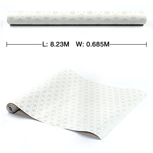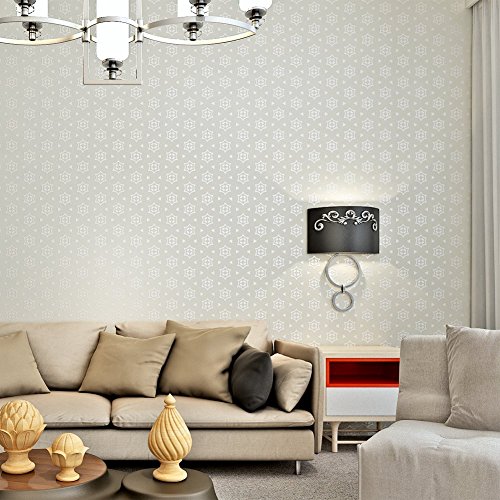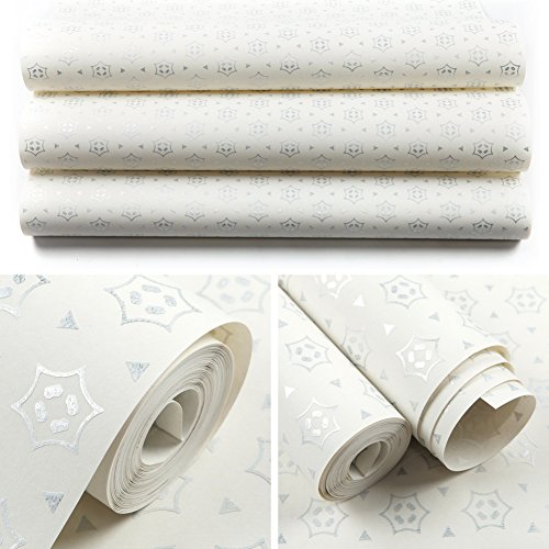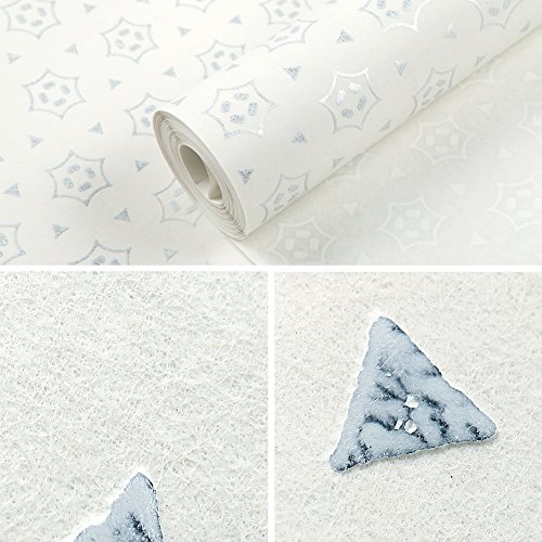 (ハンメロ)Hanmero壁紙 幾何学模様 はがせる 不織紙 のりなし リビング部屋diyリフォーム用 68.5cmx8.23m 箔押しホワイト&銀箔 QZ0474