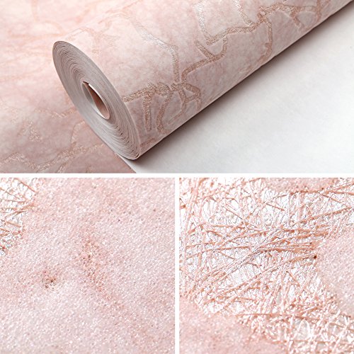 (ハンメロ)Hanmero壁紙 ひび割れ模様 はがせる 不織紙 のりなし リビング部屋diyリフォーム用 53cmx10m ピンク QZ0477