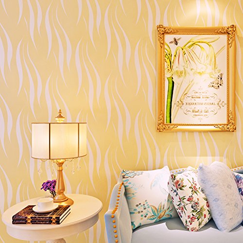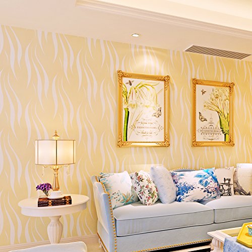 (ハンメロ)HANMEROのりなし壁紙 波 フリース シルバー シンプルモダン 1ロール(53cm×10m) (イエロー)