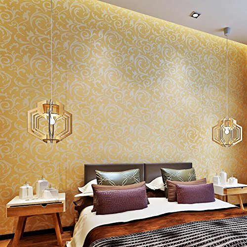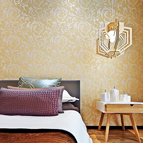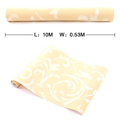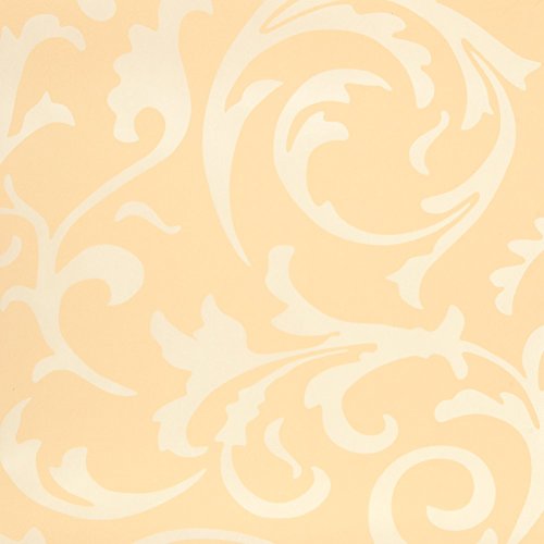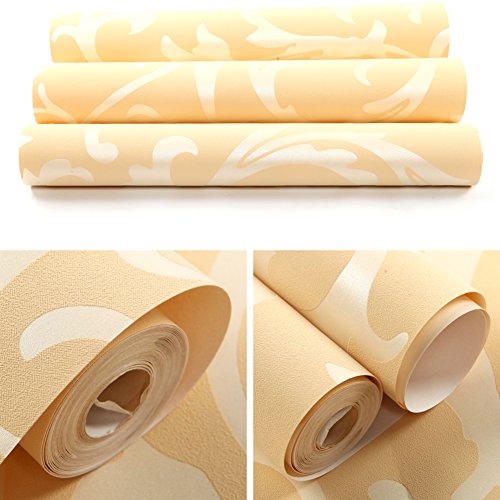 (ハンメロ)HANMEROのりなし壁紙 葉っぱ フリース シルバー ラグジュアリー 1ロール(53cm×10m) (杏色)