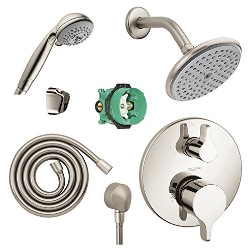 Hansgrohe KSH04353-27466-73BN Raindance E 150 Air 1-Jet Showerhead Kit with Handshower Thermostatic Trim with Diverter and Rough, Brushed Nickel by Hansgrohe