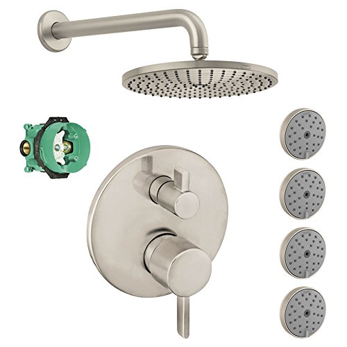 Hansgrohe KSB04231-27474-77BN Raindance Downpour Air Showerhead Kit with 4 Body Sprays, Thermostatic Trim with Diverter and Rough, Brushed Nickel by Hansgrohe