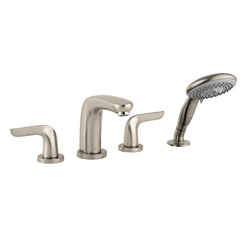 Color:Brushed Nickel Product Description 4184820 Finish: Brushed Nickel Features: -Roman tub faucet.-Deck mounted.-2 Handle.-Spout Reach: 8''. Dimensions: -Height: 6.38''. Collection: -Allegro E collection. From the Manufacturer Hansgrohe Allegro E 4-Hole Roman Tub Set Trim in Brushed Nickel # HG04184820. As one of the leading international manufacturers of plumbing products, Hansgrohe represents innovation, design, quality and showering pleasure at the highest level. Allegro E's flowing faucet body and spout perfectly reflects the natural forms of the faucet's handles. The sleek contours of Allegro E evoke an aura at once familiar and unique: subtle refinement, strong lines and a distinctive use of geometric shapes. One of the distinguishing aspects of Allegro E is its symmetry, which strikes a balance between what is progressive and what is conventional. These concepts are also projected in the Raindance E 120 AIR handshowers, which add the extraordinary feel of air-infused water to the selection of Allegro E shower products.