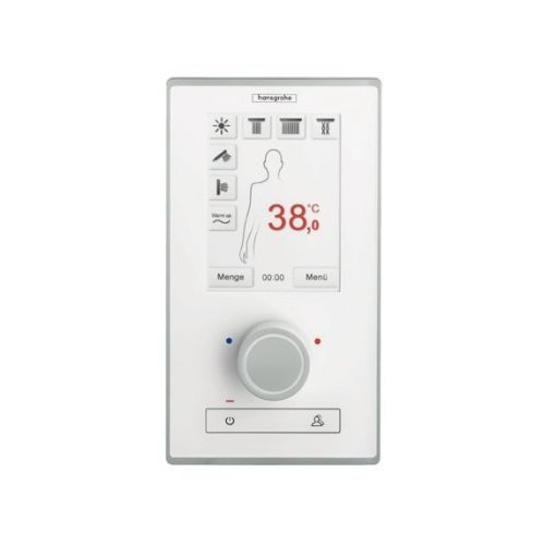 Electronic shower control with touchscreen for use with 5 individual functions. Touchscreen with large, easy to read symbols. Electronic temperature control. MP3 Player with Bluetooth connection. PuraVida is the latest collection from the Hansgrohe brand - and is trendsetting in terms of both form and function. Its innovative extras and sculptural appearance have given rise to international design awards for PuraVida. Comfort, grace and intuitive user-friendliness make PuraVida a soothing range that invites you to feel good and enjoy life. PuraVida adds a new design dimension to the world of bathrooms with its white/chrome finish (DualFinish). This dual material principle allows surfaces to seamlessly blend together while brightening up your room with shimmering chrome and pure white. The PuraVida product collection includes faucets for vanities, bathtubs and bidets, hand, overhead and side showers, a digital shower control system and accessories. If you have any questions or concerns regarding this product and/or it’s functionality, please contact Hansgrohe‘s Customer Service department at 1-800-334-0455.