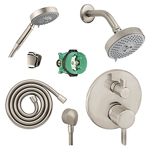 Hansgrohe KSH04231-27457-04BN Raindance S 120 Air 3-Jet Showerhead Kit with Handshower Thermostatic Trim with Diverter and Rough, Brushed Nickel [並行輸入品]