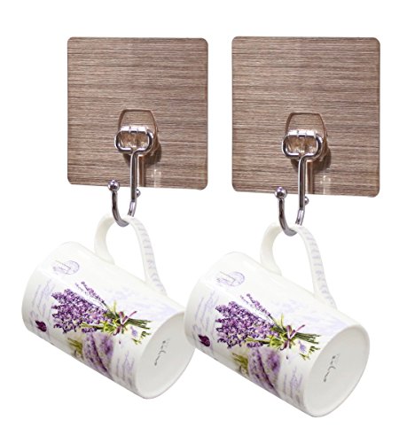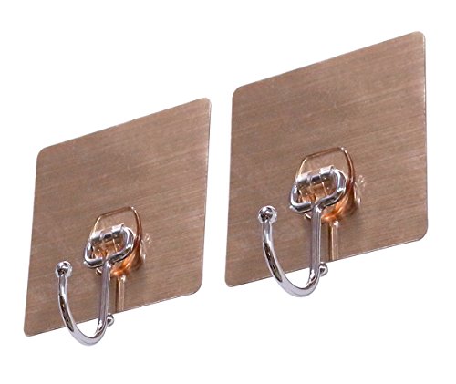 JustNileスタイリッシュなRemoveable粘着ステンレス鋼壁フック – withロングフック、接着剤正方形のセット2