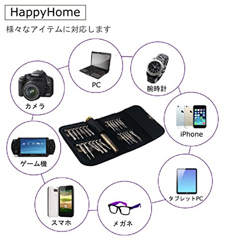 【HappyHome】精密特殊ドライバーセット 25in1 パソコン スマホ 修理 プロ用 キーケース型 クリーニングクロス付き