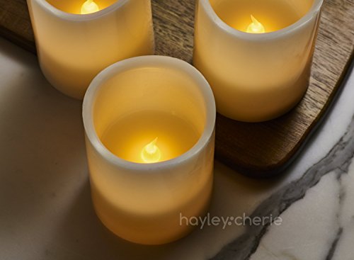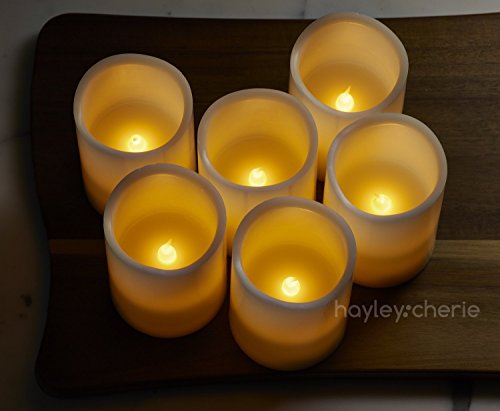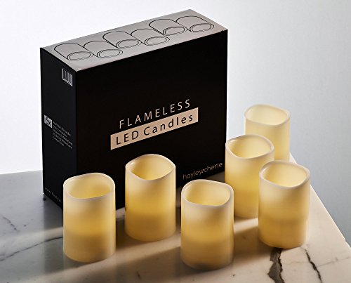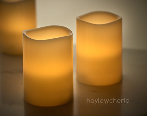 Hayley Cherie - Real Wax Flameless Candles with Timer (Set of 6) - Ivory LED Candles 3" wide x 4" tall - Flickering Amber Flame - Battery Operated Pillar Candles - Unscented [並行輸入品]
