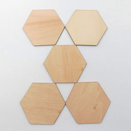 Healifty 木片 六角形 手作り 未塗装 DIY工芸 装飾 絵画 50個入 60mm