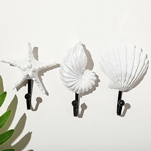 healifty 3pcs樹脂コートフックレトロSea Star貝Conchフックハンガー壁掛けフック装飾壁のコートタオルキーバッグキッチンバスルーム、ホーム装飾