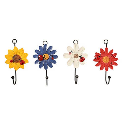 healifty 4pcs樹脂てんとう虫フラワーフック冷蔵庫ステッカーフック壁ドアキッチンバスルームハンガー