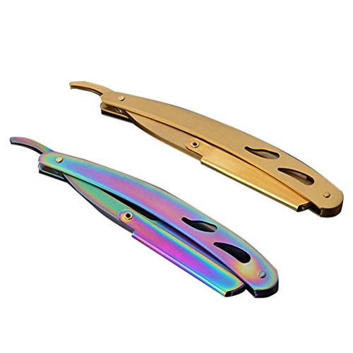 Healifty 折りたたみ剃刀ホルダープロフェッショナルチタンストレートエッジ安全2本