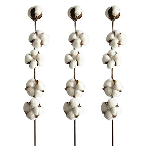 Healifty 3本の綿の茎5つのコットンの綿の綿の枝人工乾燥した花ホームウェディングの装飾